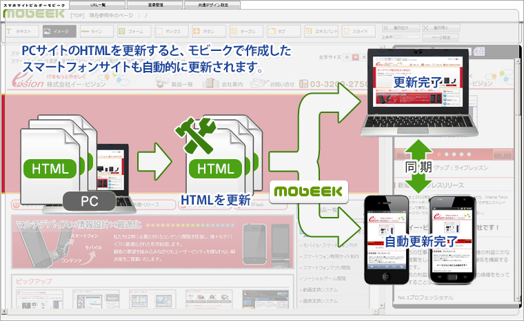 スマホサイト対応・作成・変換ツール「モビーク」は本当に簡単です。
