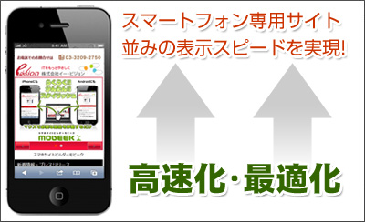 独自の方法で表示速度を高速化することで、遅くなりがちな表示スピードを改善、スマホ専用サイトを作成した場合とほぼ変わらない表示速度を実現しています。